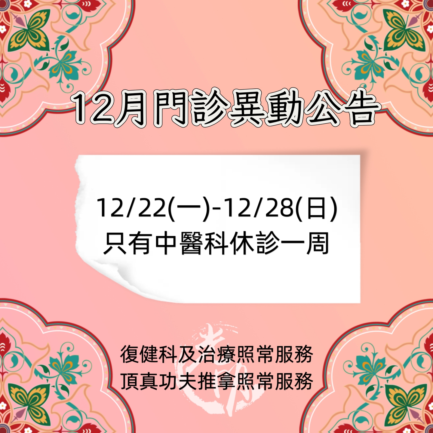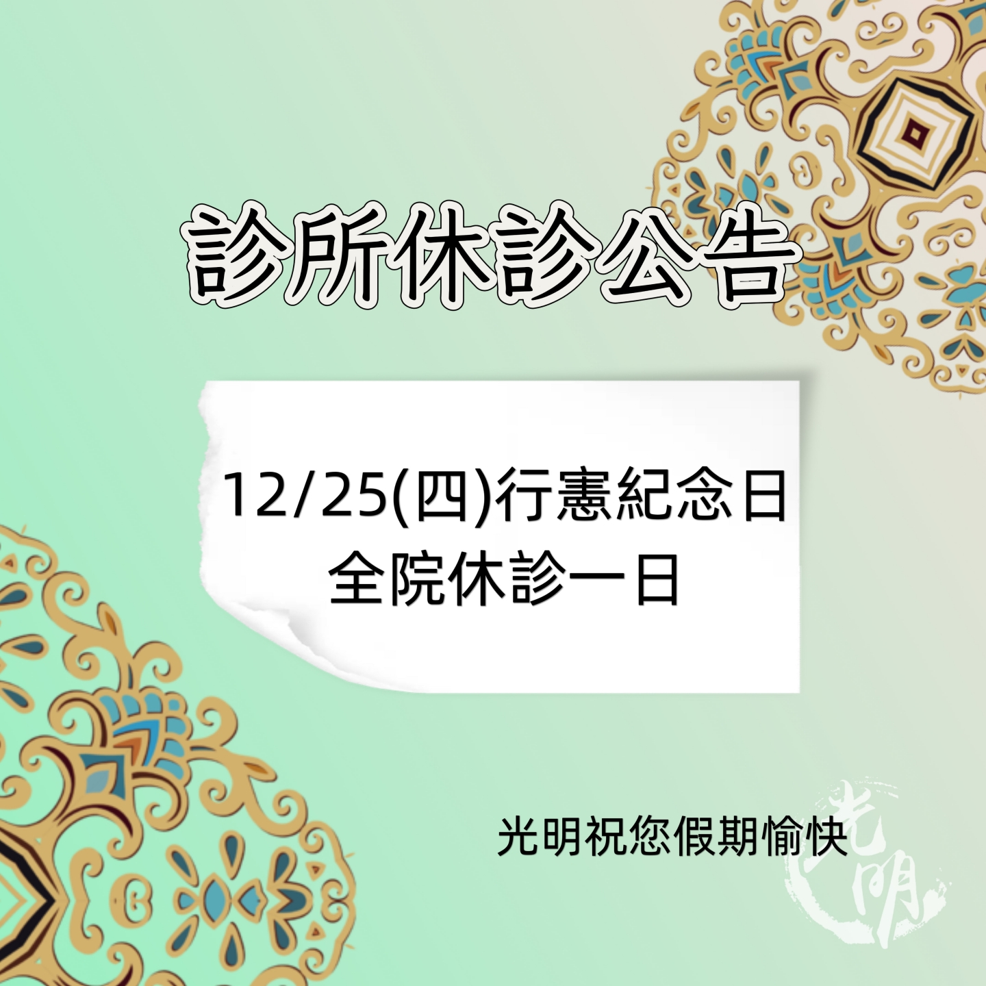 114年12月休診公告